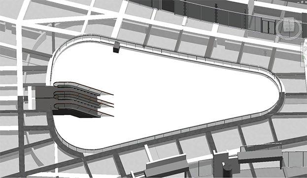 ▲鏤空區(qū)域,雙曲面檐口通過(guò)BIM模型演示與現(xiàn)場(chǎng)定位,模型下單