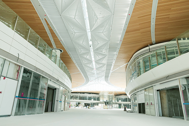 深圳機(jī)場(chǎng)衛(wèi)星廳建筑面積23萬(wàn)多平方米,由中央、東南、東北、西南和西北五個(gè)指廊組成,分為地上四層、地下一層。作為唯一參與精裝修的民營(yíng)企業(yè),中裝建設(shè)主要負(fù)責(zé)深圳機(jī)場(chǎng)衛(wèi)星廳2-3層西南、西北指廊,西雙子星廣場(chǎng)的精裝修工程。