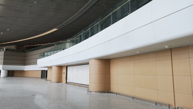 中裝建設(shè)負(fù)責(zé)整體航站樓的內(nèi)部精裝項(xiàng)目,精裝建筑面積約為7萬平方米。項(xiàng)目于2018年4月10日進(jìn)場正式開工,2020年6月22日竣工驗(yàn)收。經(jīng)過一年多的測試檢驗(yàn),將于2021年8月12日正式通航。中裝建設(shè)施工范圍從施工內(nèi)容涵蓋從F區(qū)L1層、L2層、負(fù)一層的國內(nèi)、國際行李提取大廳、行李查詢及大件行李托運(yùn)區(qū)以及國內(nèi)、國際迎賓大廳及5個(gè)航站進(jìn)出門斗、其中包含20個(gè)公共衛(wèi)生間、殘疾人衛(wèi)生間和12個(gè)嬰兒護(hù)理室等多項(xiàng)公共區(qū)域。